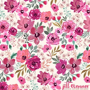Hand painted flowers in pinks and greens